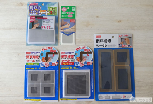 網の表面にあいた小さな穴やヤブレの場合、網全体を張り替えるのではなく、部分補修用シールを利用する方法もあります。